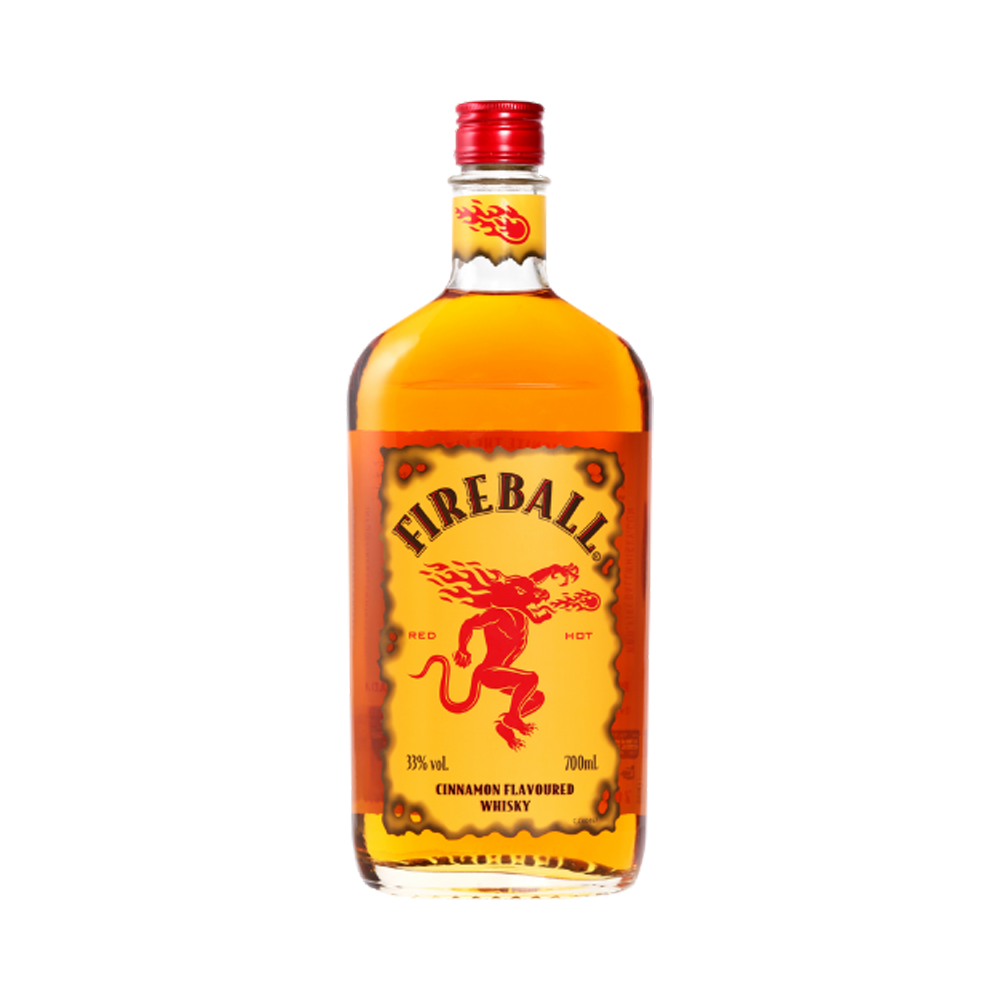 Fireball Cinnamon Whisky is a cinnamon-flavoured whisky-based liqueur produced by the Sazerac Company. Its foundation is Canadian whisky, and the taste otherwise resembles the candy with a similar name, Ferrara Candy Company’s “Atomic Fireball” candy. It is bottled at 33%. According to the official Fireball website, the product was developed in Canada in the mid-1980s, and for a long time was little known outside of Canada.