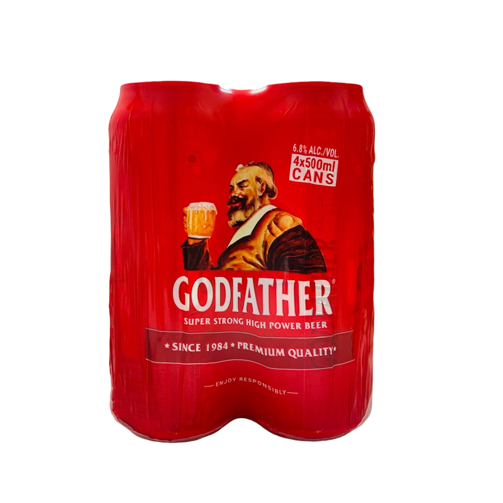 GODFATHER STRONG BEER CANS 500ML–6.8%-24PK (6 x 4PK) (BBD–30/09/2026)