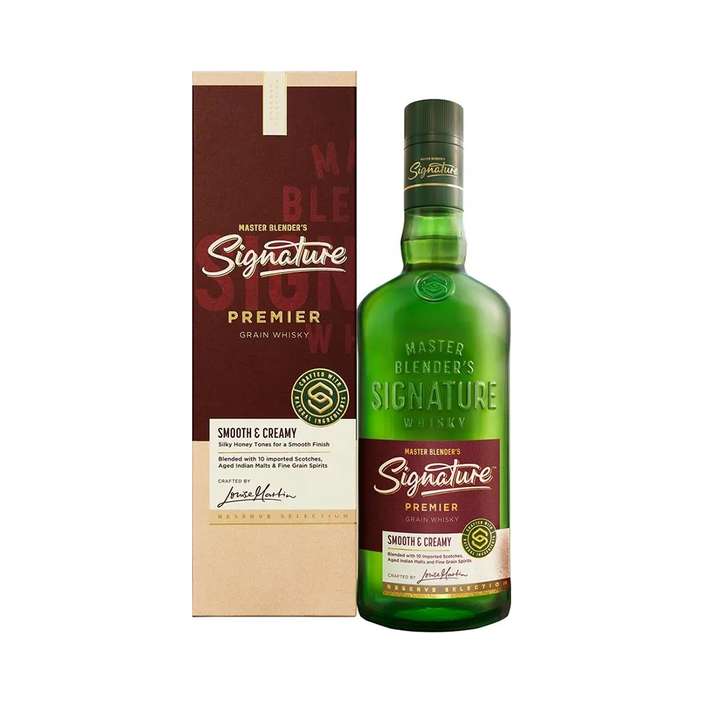 Signature is a distinctive hand crafted whisky born out of Master Blender Caroline Martinβs passion for whisky-making. A rare whisky with 100% aged Indian malts blended to perfection with aged Islay and Highland Scotch whiskies, for that full-bodied, peaty character recognized and rewarded the world over.Β Since the launch of Signature in 1994, the brand has been a pioneer in driving initiatives that redefine premium whiskies. Signatureβs is known of its iconic octagonal green-colored bottles.